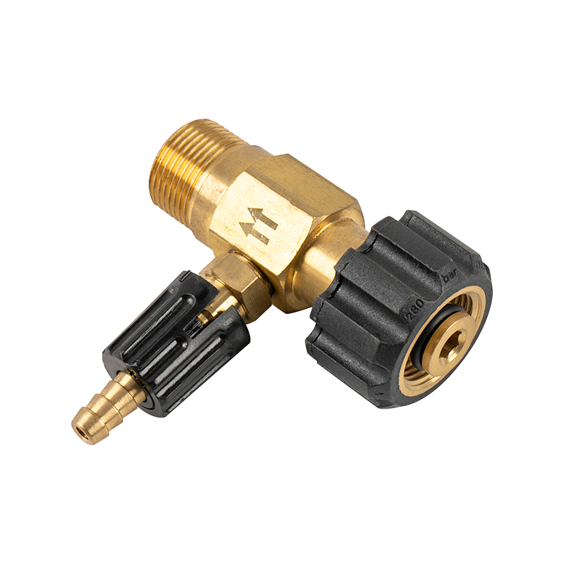 หัวฉีดสารเคมีเครื่องซักผ้าแรงดันเป็นอุปกรณ์เสริมที่ขาดไม่ได้สำหรับเครื่องซักผ้าแรงดันสูง พวกเขาส่วนใหญ่จะใช้เพื่อผสมผงซักฟอกฆ่าเชื้อหรือของเหลวเคมีอื่น ๆ ที่มีการไหลของน้ำแรงดันสูงเพื่อเพิ่มผลการทำความสะอาดหรือการฆ่าเชื้อโรค เข็มฉีดยามักจะติดตั้งที่ปลายเต้าเสียบของปั๊มและติดตั้งหัวฉีดขนาดเล็ก เมื่อเครื่องซักผ้าเชื่อมต่อกับหัวฉีดสารเคมีที่มีรูรับแสงขนาดใหญ่ขึ้นรูรับแสงของหัวฉีดภายในเข็มฉีดยาจะสร้างความแตกต่างของแรงดันกับรูรับแสงของหัวฉีดภายนอกดังนั้นจึงทำให้เกิดการไหลของน้ำยาทำความสะอาดทางเดียวโดยอัตโนมัติ ปริมาตรดูดของหลอดฉีดยาสามารถปรับได้ ผู้ใช้สามารถปรับอัตราการไหลผ่านลูกบิดตามความต้องการที่แท้จริงทำให้มั่นใจได้ว่าการควบคุมปริมาณการทำความสะอาดหรือของเหลวที่ใช้ยาฆ่าเชื้อเพื่อให้ตรงตามข้อกำหนดการใช้งานที่แตกต่างกัน ร่างกายของเข็มฉีดยาทำจากทองเหลืองซึ่งมีคุณสมบัติต่อต้านการกัดกร่อนที่ดีทำให้มั่นใจได้ถึงความมั่นคงและความทนทานในระหว่างการใช้งานระยะยาว