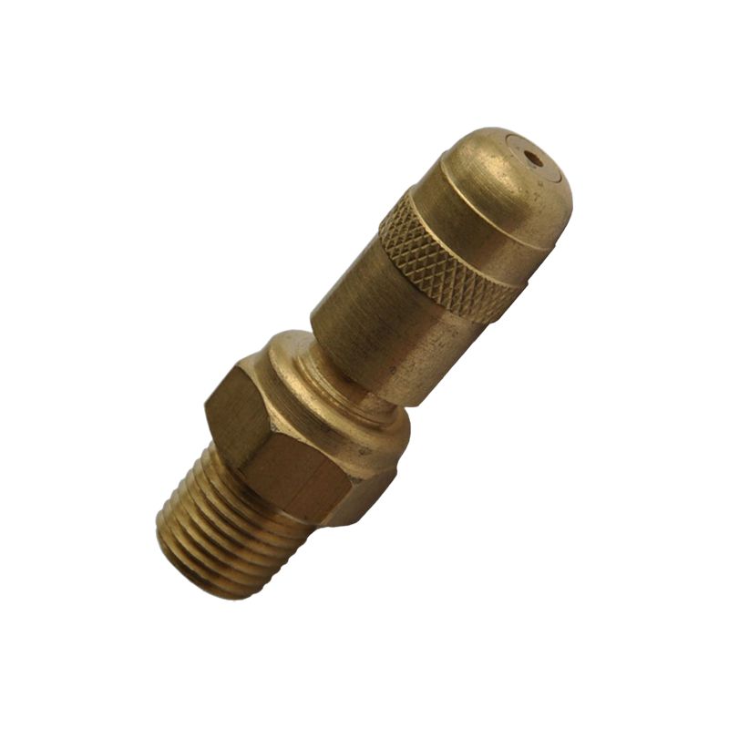 หัวฉีดอะตอมที่มีความดันต่ำทองเหลืองเป็นหัวฉีดที่ใช้กันอย่างแพร่หลายสำหรับเครื่องพ่น มันมักจะใช้สำหรับการรดน้ำดอกไม้ในป่า, อะตอม, การฉีดพ่นยาฆ่าแมลงหรือใช้อากาศเพื่อให้ความชุ่มชื้น, การลดฝุ่น, การระบายความร้อน ฯลฯ ความดันในการทำงานของหัวฉีดนี้โดยทั่วไปจะไม่เกิน 25bar เนื่องจากการออกแบบพิเศษของแกนภายในของมันเมื่อแจ็คเก็ตด้านนอกถูกปรับการไหลของน้ำที่พ่นจะเปลี่ยนจากเส้นตรงเป็นหมอกรูปกรวย ผู้ใช้สามารถปรับสถานะการไหลของน้ำตามความต้องการของตนเองเพื่อให้ได้ผลการใช้งานในอุดมคติ หัวฉีดทำจากทองเหลือง วัสดุทองเหลืองมีความต้านทานการกัดกร่อนและสามารถใช้เป็นเวลานานในสื่อกรดและเค็มดังนั้นจึงเป็นวัสดุที่เหมาะสำหรับการทำหัวฉีดประเภทนี้